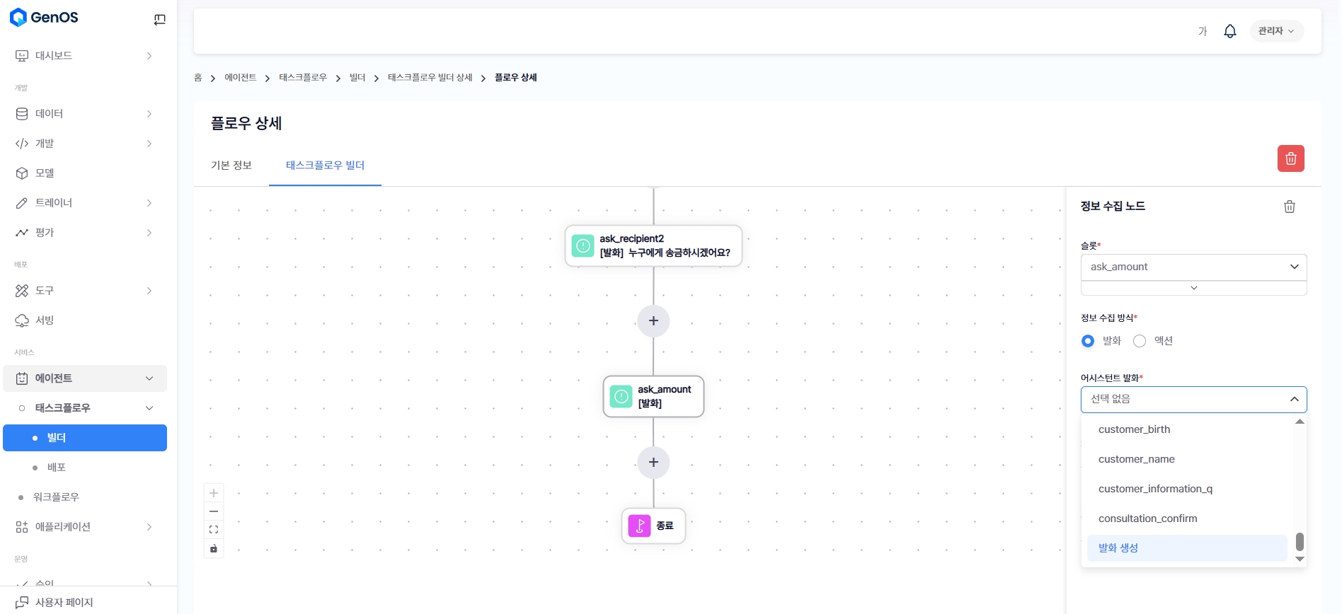 태스크플로우 빌더 : 태스크플로우 빌더를 선택합니다. 예: “계좌 이체 태스크플로우”