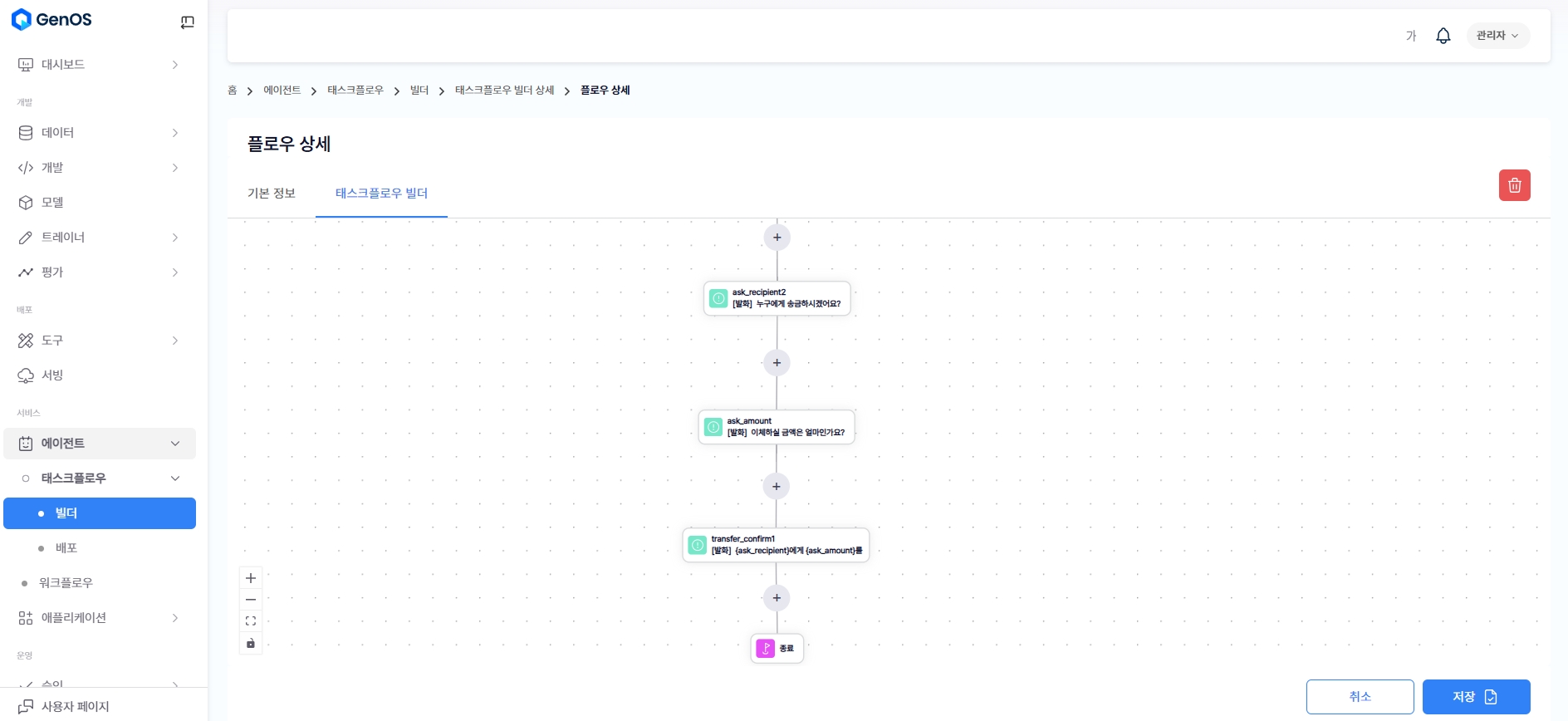 상세 설명 : 태스크플로우 빌더의 특징이나 목적을 간단히 메모합니다. 예: “계좌 이체를 위한 태스크플로우입니다”