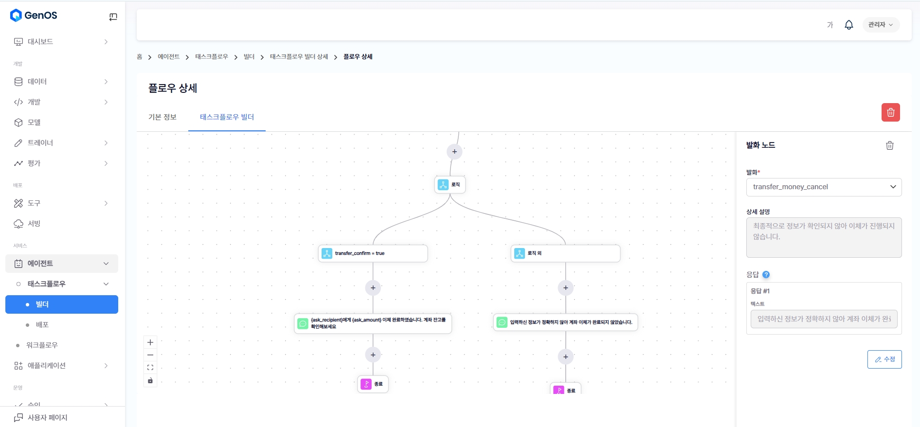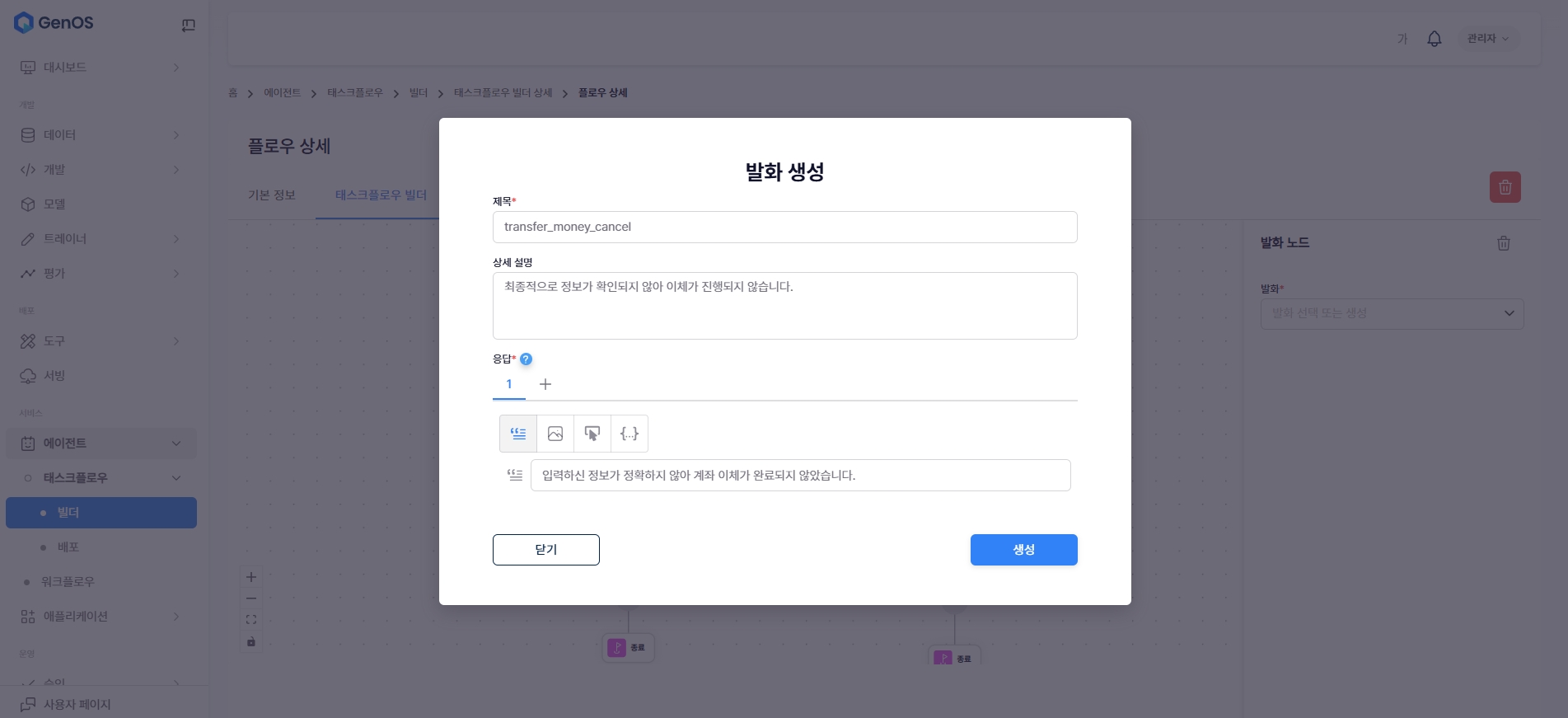 상세 설명 : 발화의 상세 설명을 입력합니다. 예: “최종적으로 확인된 정보로 수신자에게 금액을 이체합니다.”