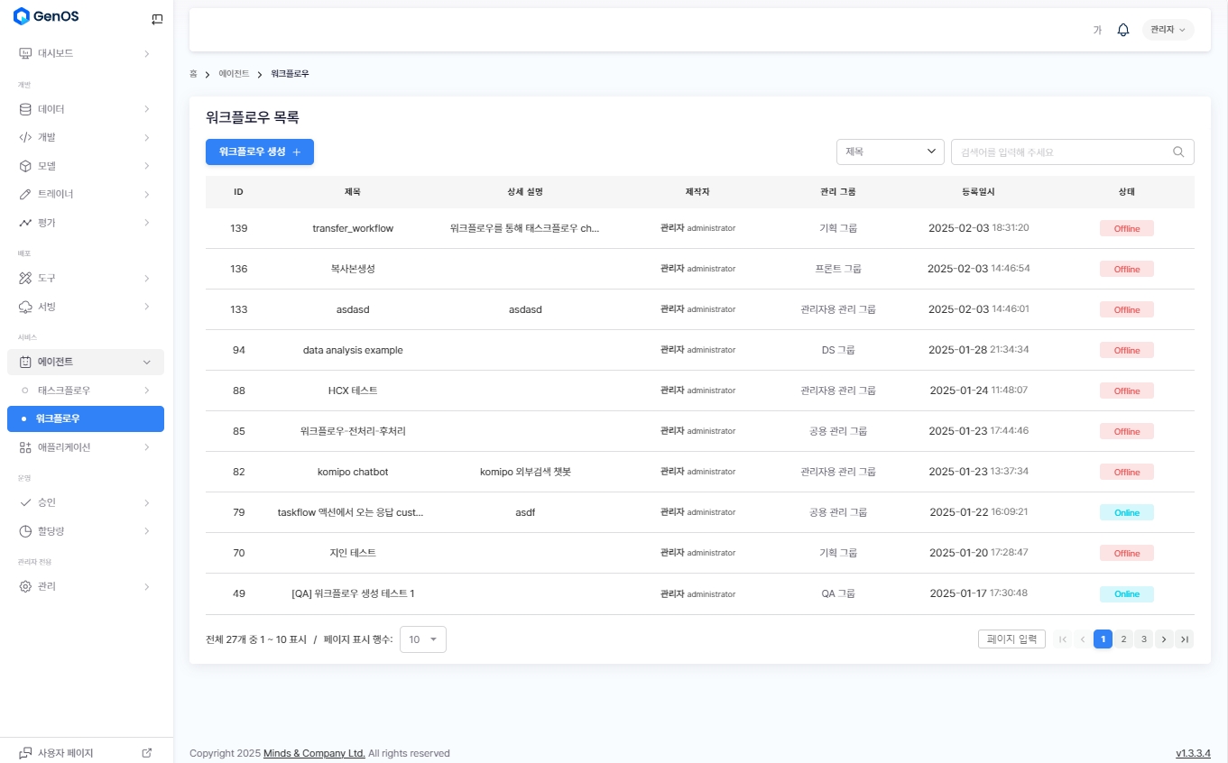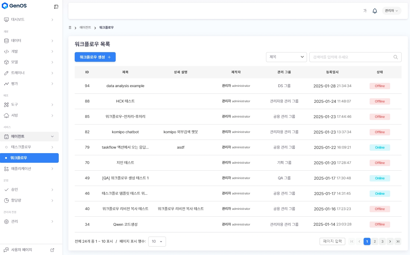생성한 워크플로우는 워크플로우 목록에서 확인할 수 있습니다. 목록에서 해당 워크플로우를 더블 클릭하여 상세 페이지로 이동합니다.
