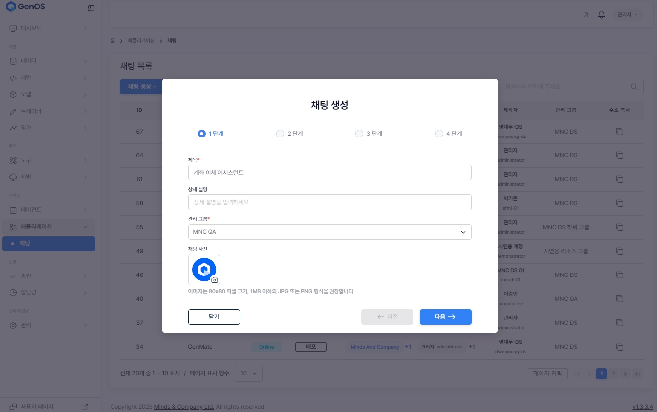 제목 : 채팅의 이름을 입력합니다. 예: “계좌 이체 어시스턴트”