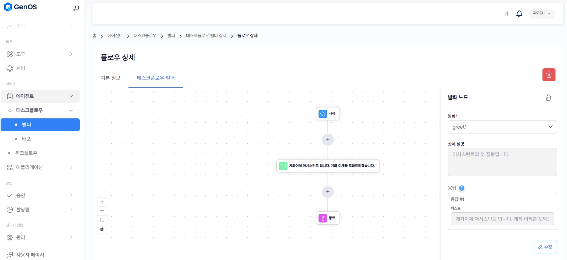 수정 버튼을 클릭하여 태스크플로우 빌더를 수정합니다.