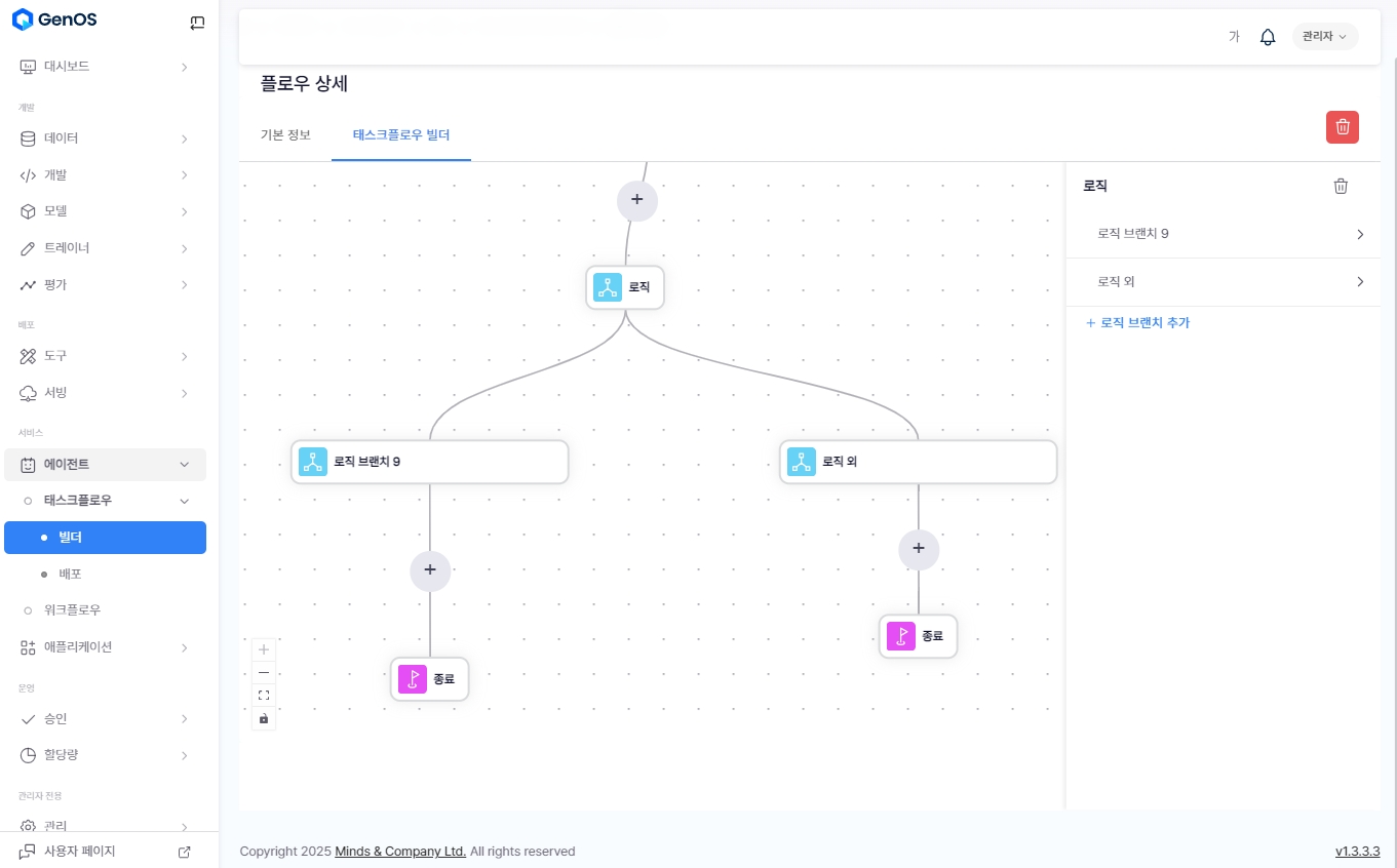 로직 브랜치와 로직 외 브랜치가 기본 제공되며, 로직 브랜치를 추가하여 조건을 추가할 수 있습니다.