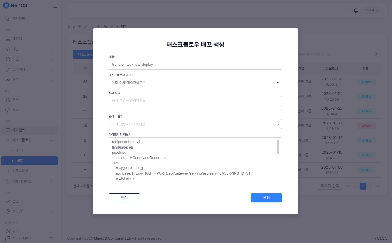 상세 설명 : 태스크플로우 배포의 상세 설명을 입력합니다.