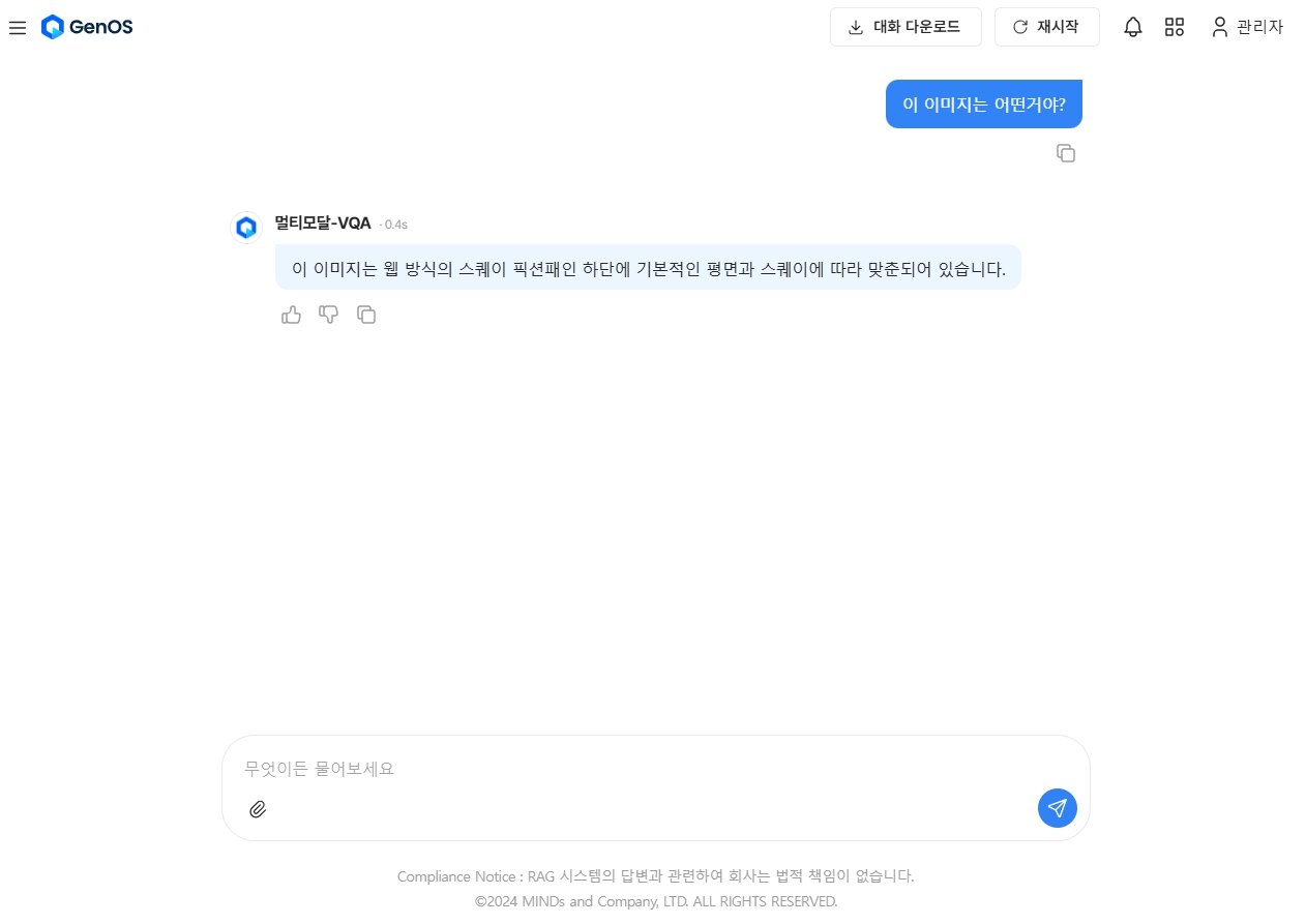 질문을 입력하고 엔터를 누르면 채팅 출력을 확인할 수 있습니다.