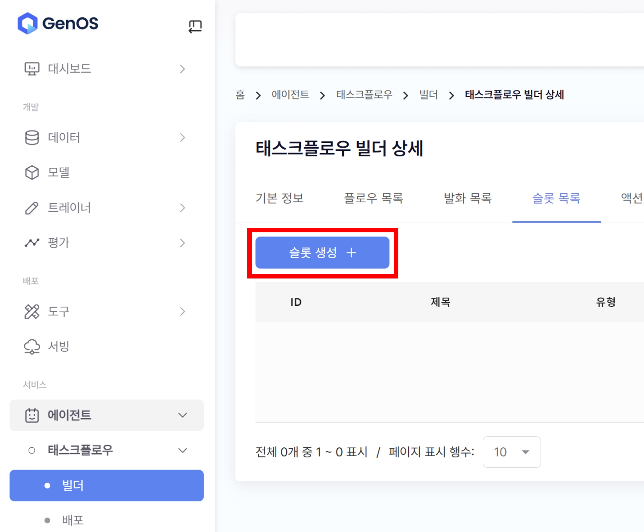 슬롯 목록>슬롯 생성버튼을 통해 슬롯을 생성할 수 있습니다.